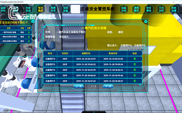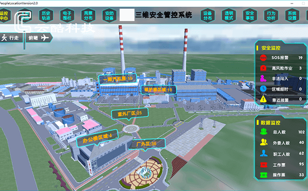 云酷科技結(jié)合集團安全需求現(xiàn)狀,建設(shè)人員定位管控系統(tǒng),通過構(gòu)建全廠1:1等比例三維模型和部署UWB高精度定位設(shè)備,實現(xiàn)人、車實時位置監(jiān)控;通過集成電廠各相關(guān)業(yè)務(wù)系統(tǒng),實現(xiàn)安全數(shù)據(jù)的協(xié)同聯(lián)動;通過在集團側(cè)部署智慧安全管控平臺,為集團提供安全監(jiān)控及大數(shù)據(jù)分析工具。