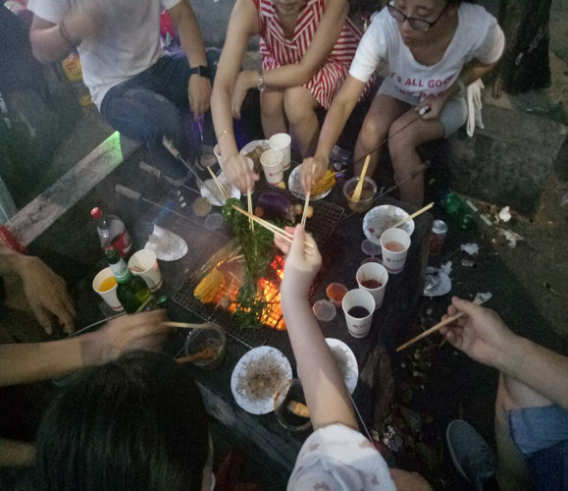 接下來就開始了我們的海邊沙灘自助燒烤。“自力更生”,喂飽自己的肚子吧!大家圍在烤爐旁,我?guī)湍氵f一下調(diào)料,你幫我刷一下辣醬,同事間默契不在盡言中,其實,這也是心靈的溝通與交流,團友們燒烤美味食品的同時,更多的是增進了同事之間的情感交流,提升了團隊凝聚力。
