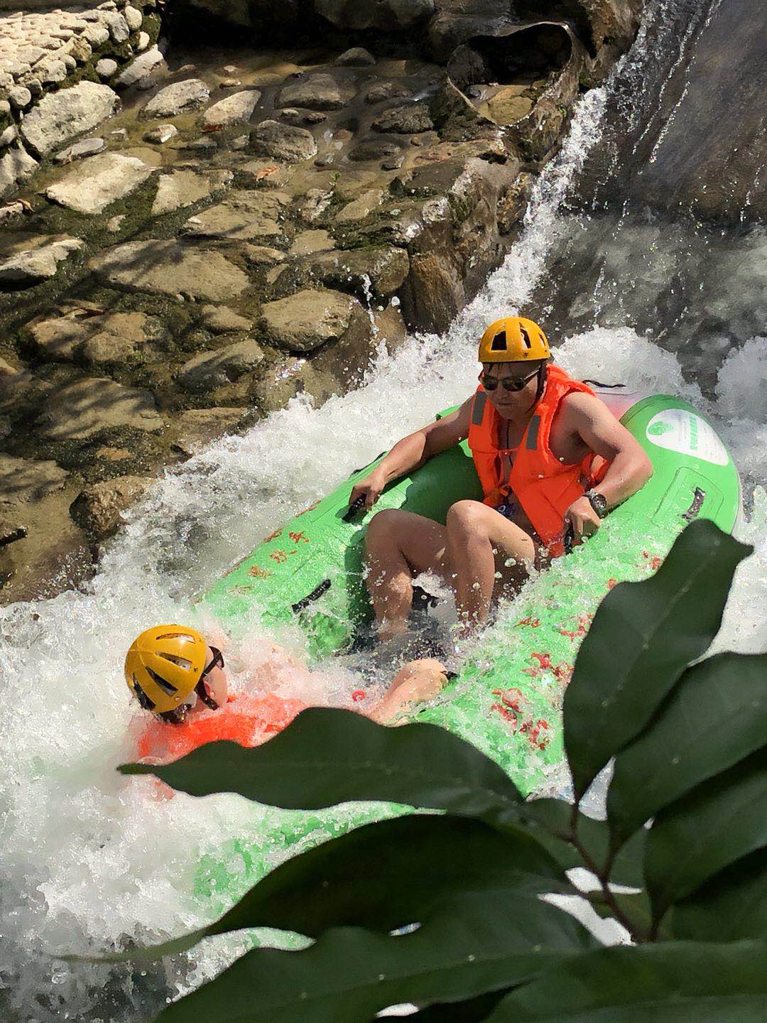 如此炎炎夏日,來到了碧海灣又怎能少得了緊張刺激,又清涼的漂流。漂流河道經漂流行家精心設計打造,保留原始風貌,渾然天成,全長3.8公里,總落差達182米,漂流落差達160多處,巨大高速落差達17米,長80多米。