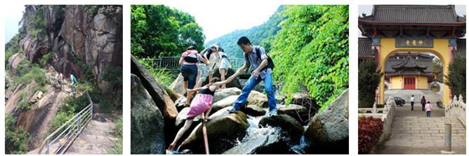 攀爬鵝公髻(海拔619米)或大康溪谷溯溪。為龍崗第一高峰,沿登山道可游覽一線天、空中棧道、三疊飛瀑等景點。大康溪谷頗有盛名,兩側山峰突兀嵯峨,怪石嶙峋,流水潺潺,是溯溪的絕佳場所! |