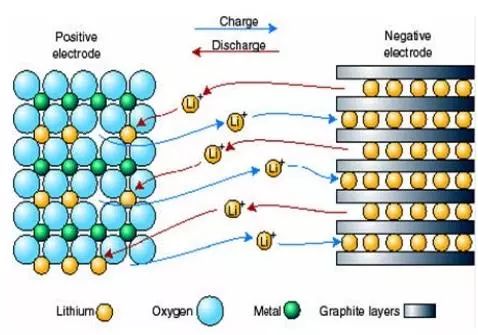 在鋰離子電池的充放電過(guò)程中,鋰離子處于從正極→負(fù)極→正極的運(yùn)動(dòng)狀態(tài)。這就像一把搖椅,搖椅的兩端為電池的兩極,而鋰離子就在搖椅兩端來(lái)回運(yùn)動(dòng)。所以鋰離子電池又叫搖椅式電池。