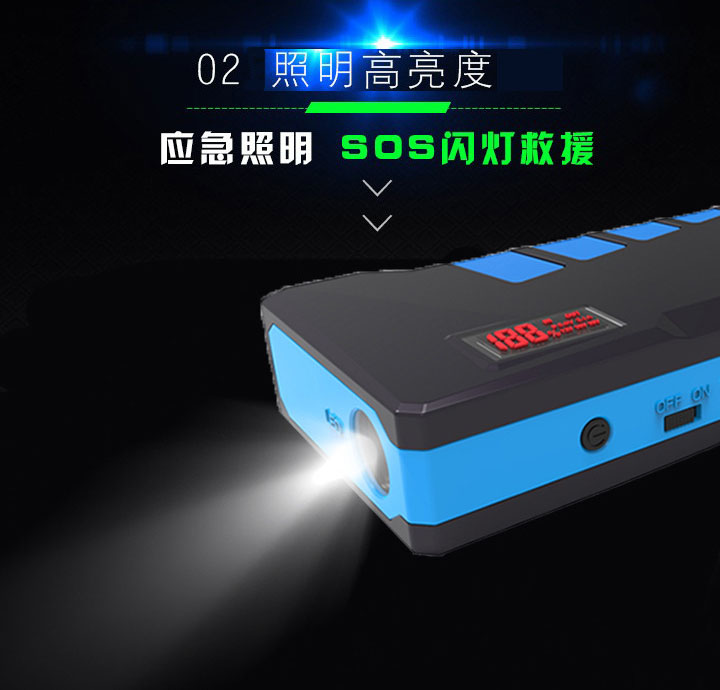 昂佳A26汽車應急電源的高強度LED應急照明,據廠家實驗檢測可持續50個小時!為夜間提供了有利救援條件;另外還有一個SOS爆閃提醒功能,射距很遠,用它來求助也很給力的。