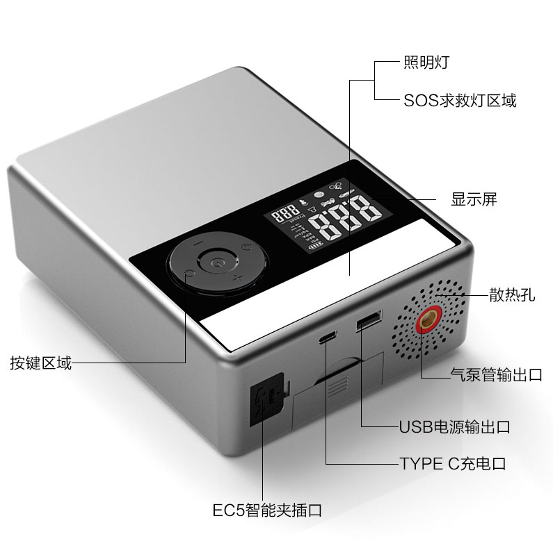 APJS-03汽車應急啟動電源打氣泵一體機
