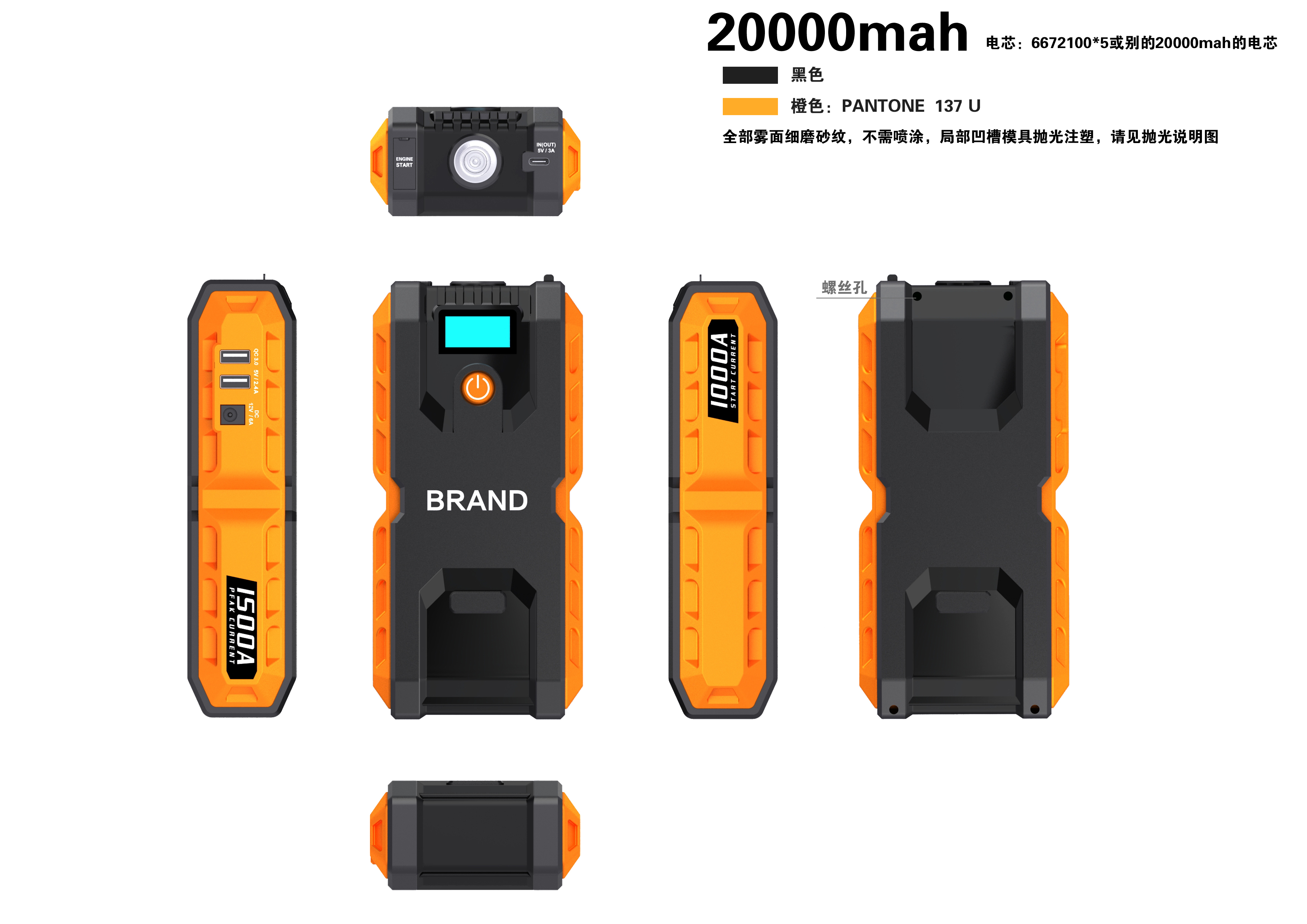 • 主要的功能:汽車應急啟動、LED燈(照明、爆閃、SOS)另可對車載電器、手機、平板電腦、MP4、數碼相機、PDA、掌上游戲機、學習機等產品充電